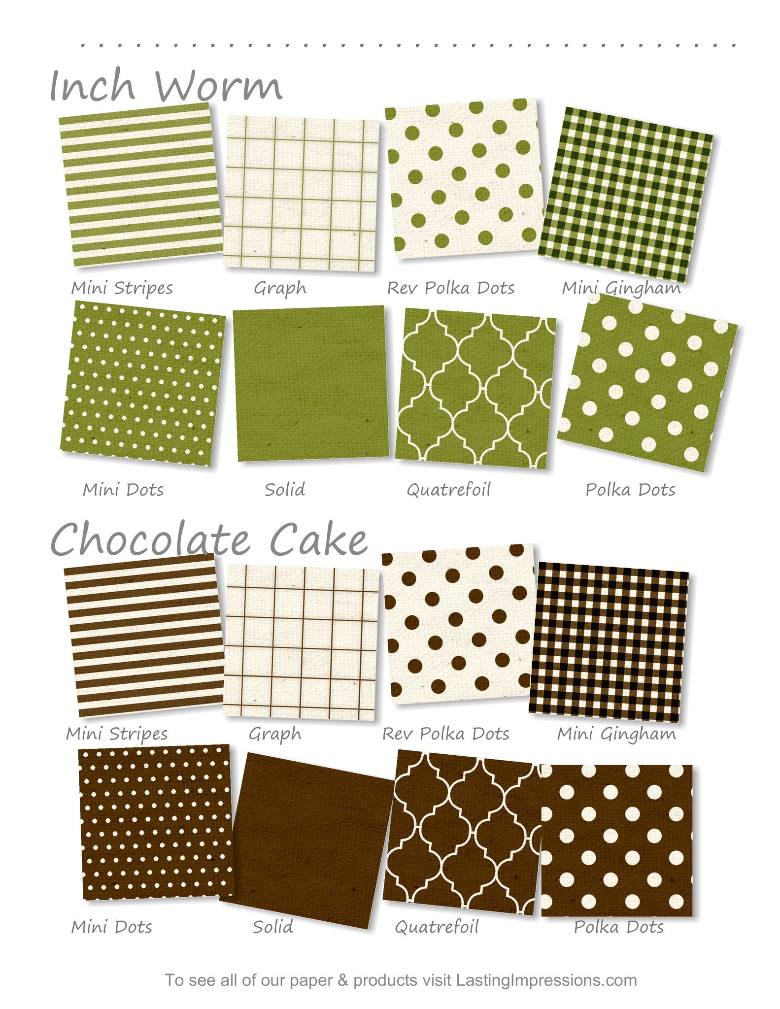Papers are 8 1/2 x 11" shown in 2" swatches