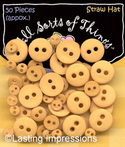 Buttons - Straw Hat. Approx. 50 assorted sizes of buttons per bag.