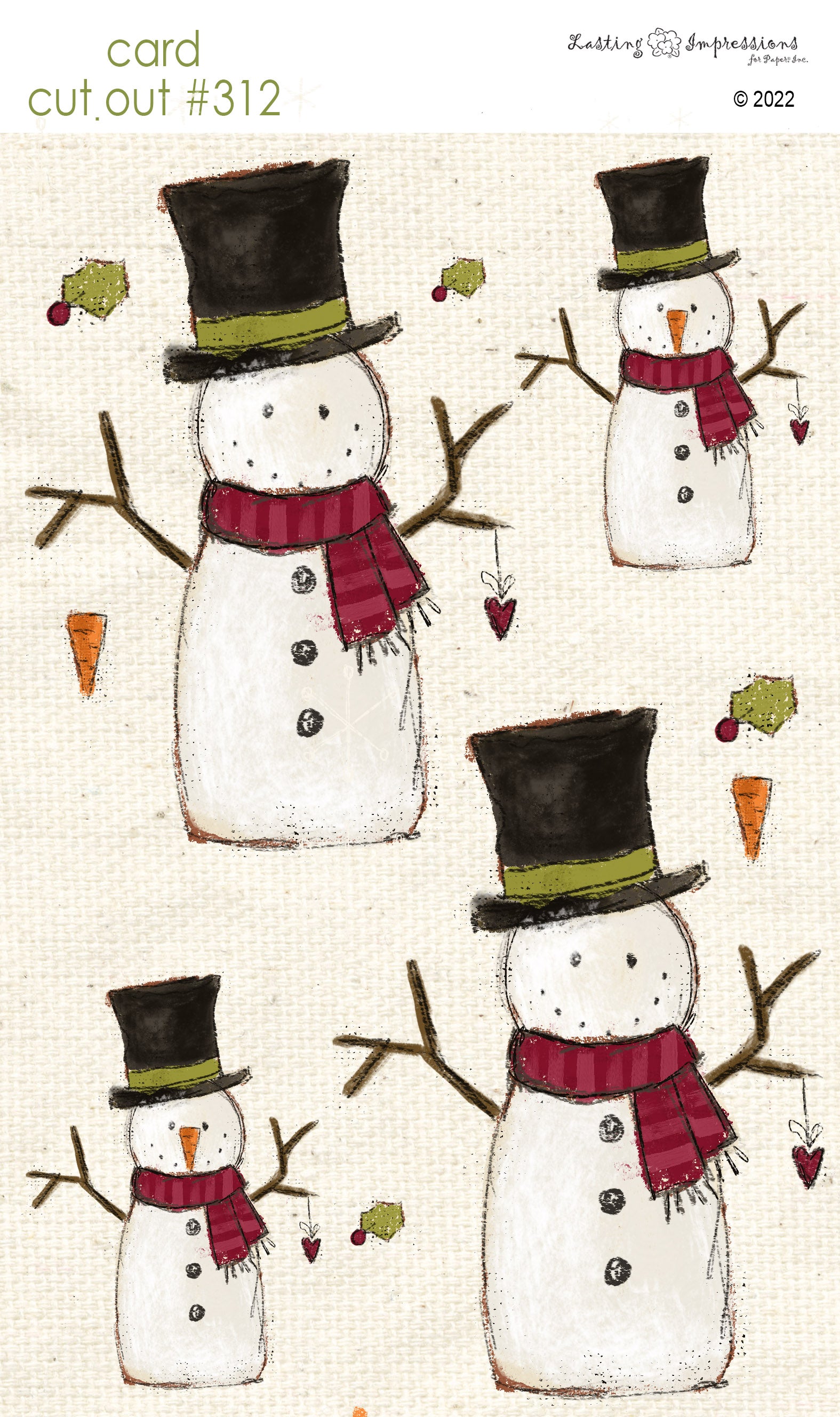 CCO 312 Card Cut Out #312 - Snowman Red Wagon Scarf