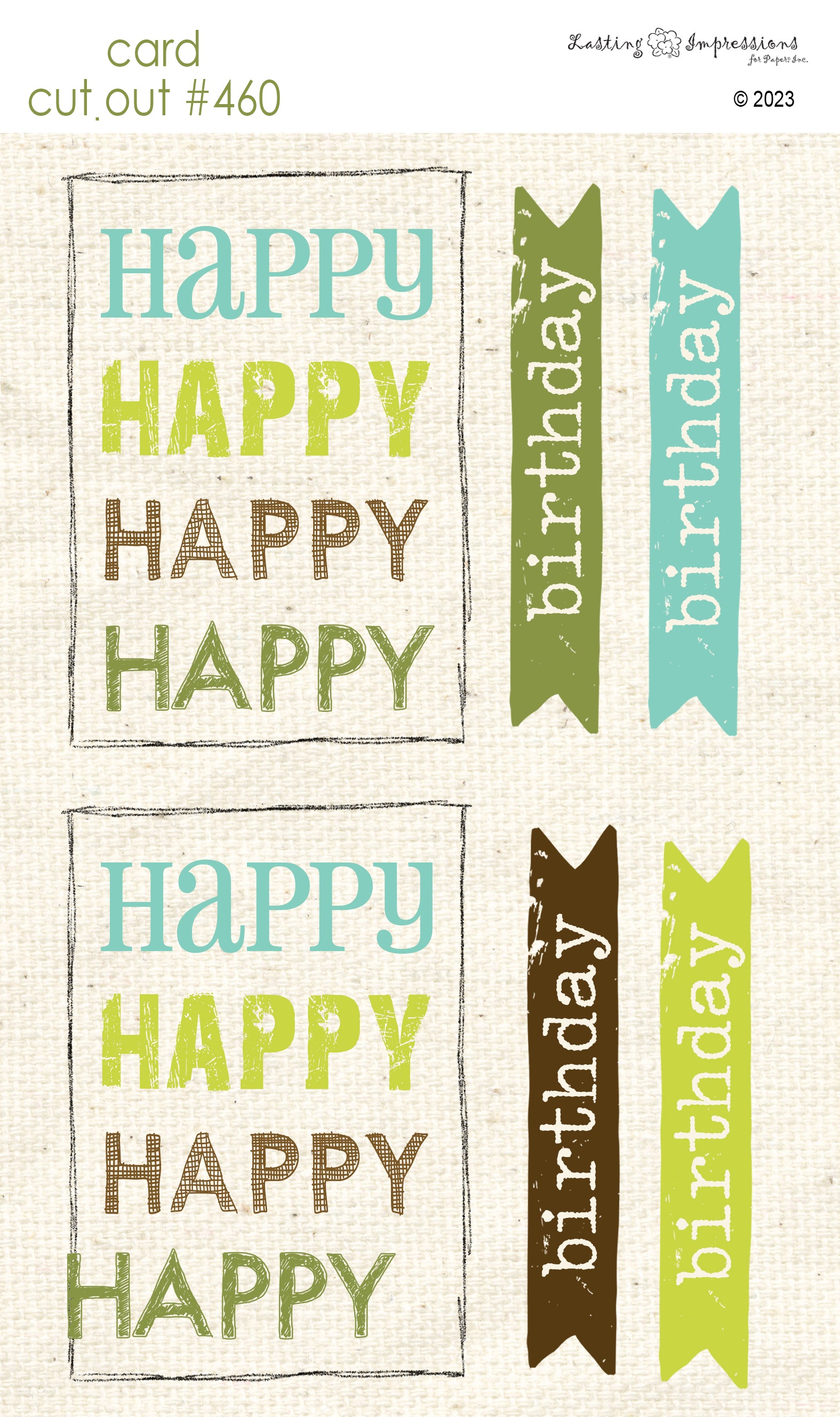 CCO 460 Card Cut Out #460 Happy Happy Happy Birthday - Brown & Blue