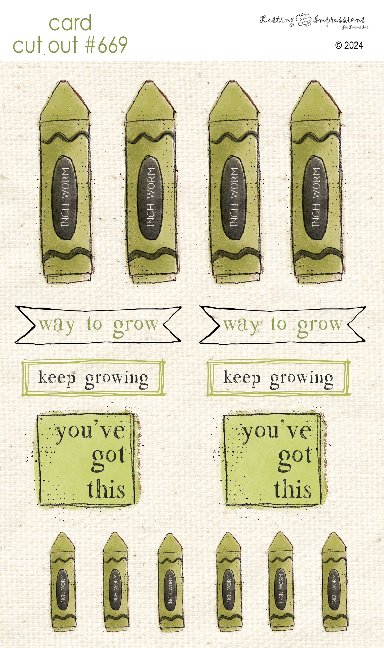 CCO 669 Card Cut Out #669 Inch Worm Green Crayon